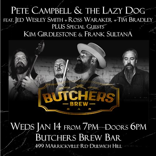 Wed, 14 Jan PETE CAMPBELL & THE LAZY DOG PLUS SPECIAL... Butchers Brew Bar 499 Marrickville Rd, Dulwich Hill |
